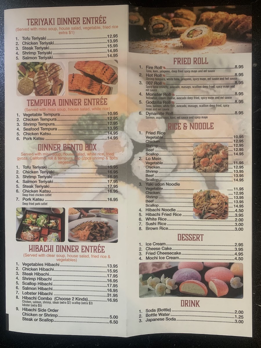 Served with miso soup,house salad ,white rice,fried gyoza,6pcs California roll & tempura app(2 pcs shrimp tempura,3 pcs vegetable tempura)